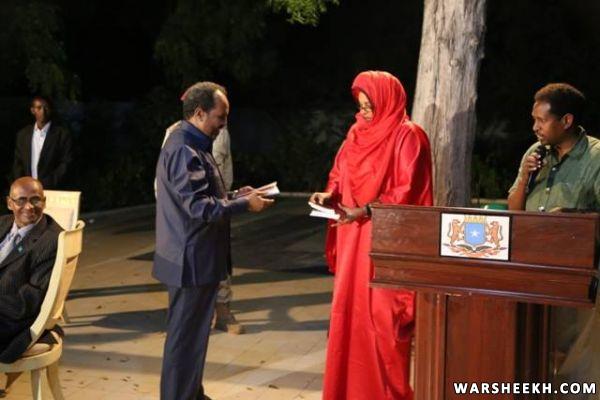 Muqdisho 07 September 2013 - Madaxweynaha Jamhuuriyadda Federaalka Soomaaliya Mudane Xasan Sheekh Maxamud ayaa xalay xarunta Madaxtooyada casho sharaf ugu sameeyey ka soo qeybgalayaashii Shirka Siyaasadda oo shalay lagu soo gabogabeeyey Muqdisho Xafladan casho sharafta waxaa ka soo qeybgalay Marwada Madaxweynaha Marwo Qamar Ali Omar, Ku-Simaha Ra'iisul Wasaaraha ahna Ra'iisul Wasaare Ku xigeen & Wasiirka Arrimaha Dibedda Marwo Fowzia Yusuf Haji Adam, Wasiiro, xildhibaano, Guddoomiyaha Gobolka Banadir ahna Duqa Magaalada iyo marti sharaf kale.