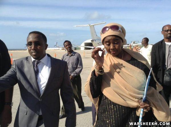 Hiba Nuura ayaa waxaa garoonka kusoo dhoweeyay Mas'uuliyiin, Fannaaniin iyo qeybaha bulshada, waxaana imaansha fannaanada ay ka danbeysay casuumaad uu Maamulka Gobolka Banaadir u fidiyay Fannaaniin ay ka mid tahay Hiba Nuura.