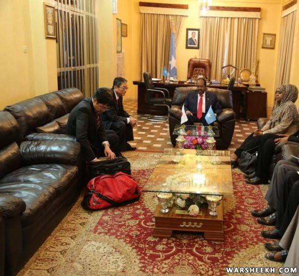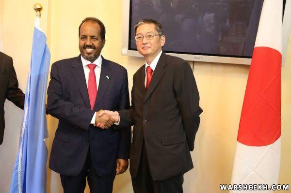 Madaxweynaha ayaa yiri: "Japan waxey na tustay sida ay u tahay saaxiib ay ka go’antahay inay ka dhabeyso ballanqaadyadii horey loogu sameeyey shirkii qaaska ahaa ee bishii May sanadkii hore lagu qabtay Yokohama oo beesha caalamka tustay sida ay Japan door hoggaamineed uga qaadaneyso arrimaha Soomaaliya. Waxaana uga mahadcelinayaa dowladda Japan sida ay u daneyneyso Soomaaliya iyo kaalmadooda dhanka amniga, dib-u-dhiska iyo kor u qaadista tayada shaqaalaha dowladda oo ay saraakiil badan tababar ku soo siiyey dalka Japan.”