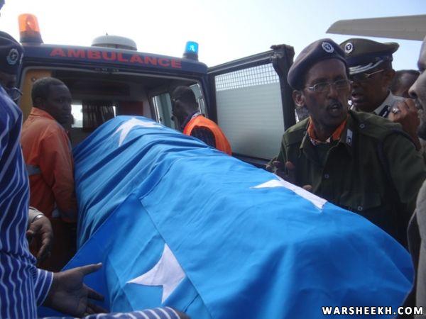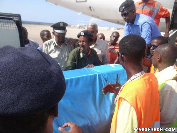 Allaha u naxariistee fanaanka Maxamed Suleyman Tubeec oo aas Qaran loogu sameeyay magaalada Muqdisho kadib markii maanta laga soo dejiyay garoonka diyaaradaha Aadan Cadde..