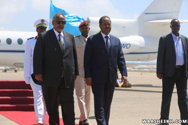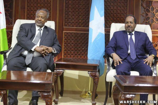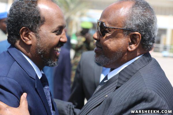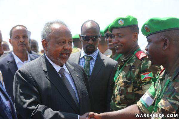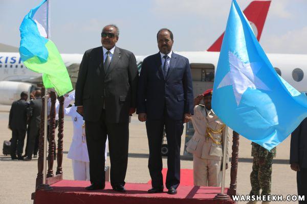 "Waa maalin taariikhi ah in mar kale walaalkeen Ismaaciil Cumar Geelle uu Muqdisho nagu soo booqdo isaga iyo wafdigiisa. Abaalka ay inoo galeen walaalaheena Djibouti ma ilaabi doonno, waayo waxay ina soo garab qabteen xilli aad u adag, waxaana muuqata inaaney weli dadaalkaasi iyo taageeradaasi ka daalin.Naf iyo maal ayay inoo hureen, waxayna safka hore kaga jiraan dagaalka aanu dooneyno inan cadowga nabadda ka soo horjeeda ku ciribtirno. Waxaan leeyahay Mudane Madaxweyne ku soo dhowow dalkaaga labaad iyo shacab ku jecel’’.