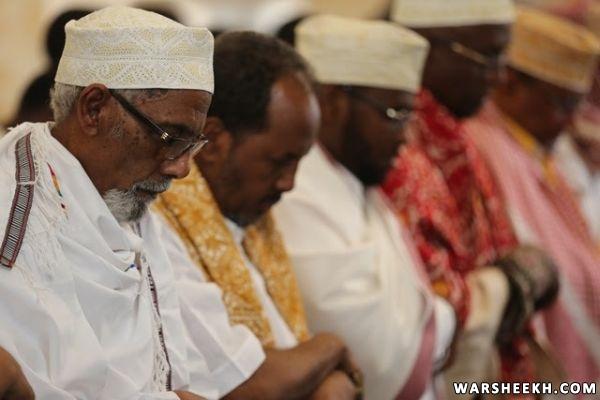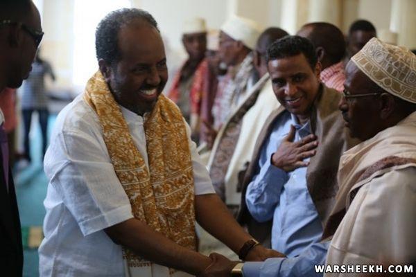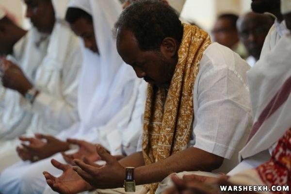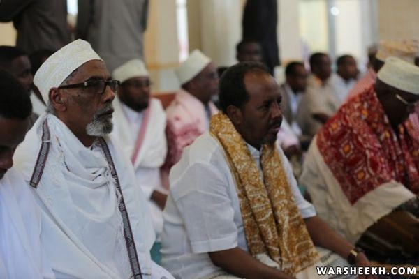 Madaxweynaha Soomaaliya Xasan Sheekh Maxamuud ayaa shacabka Soomaaliyeed kala qeybgaley salaadda Ciidul Fidriga oo ka dhacdey Masjidka Isbahaysiga ee magaalada Muqdisho.