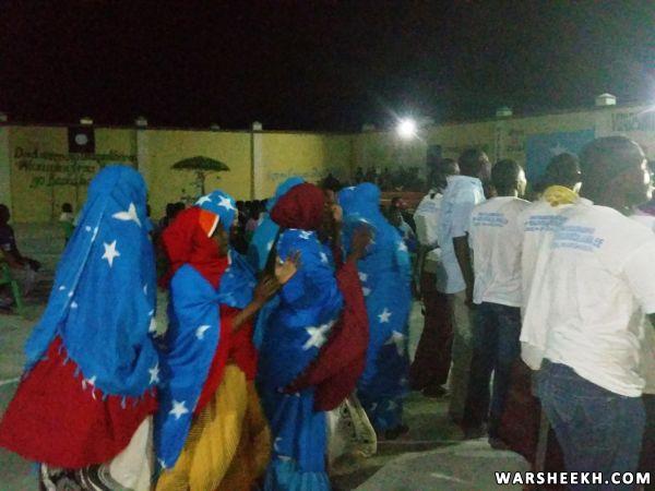 Xaflada ayaa waxaa lagu soo bandhigay ruwaayado iyo heeso wadani ah oo ay soo bandhigeen kooxda Muqdisho Band kuwaasi oo ka turjumaya xaalada haatan jirta degmada taasi oo dhinac waliba leh.
