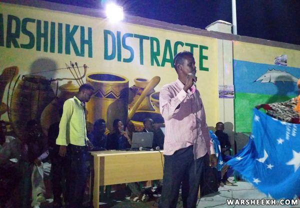 Col. Axmed Xuseen Axmed (Shiidka) gudoomiyaha degmada Warsheekh oo ka hadlay munaasibada xalay lagu soo bandhigayay waxqabadka muddada lixda bilood ah ee Maamulka degmada ayaa sheegay in maamulku qorsheynayo in mashaariic kala duwan laga hirgelinayo degmada.