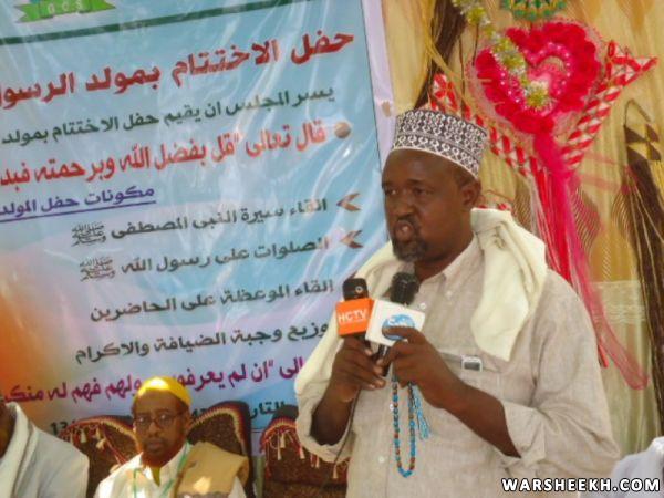 Ugu danbeyntii waxaa xaflada dhalashada Nabigeena Maxamed NNKH soo gunaanaday Sheekha Xaruntiisa lagu qabanayay ee Cusmaan Sh. Cumar Sh. Daa'uud oo ku magacdheer Sh. Cusmaan Xiddig. oo duco aad uqiiro badan ka jeediyay munaasabada ayaa bogaadiyay maamulka cusub ee golaha guud ee culimada Soomaaliyeed