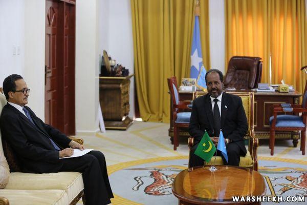 Madaxweynaha Oo Martiqaad Ku Saabsan Ka Qeybgalka Shir Madaxeedka Jaamacadda Carabta Ka Helay Madaxweynaha Mauritania + Sawirro
