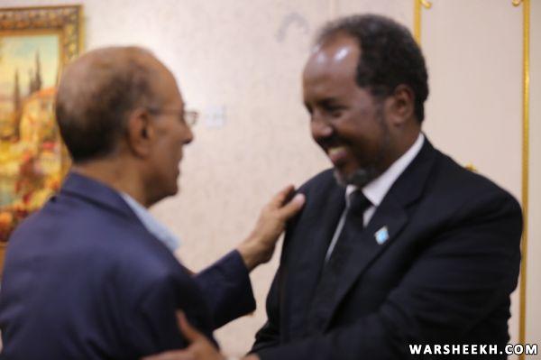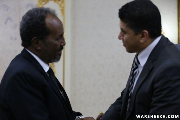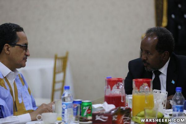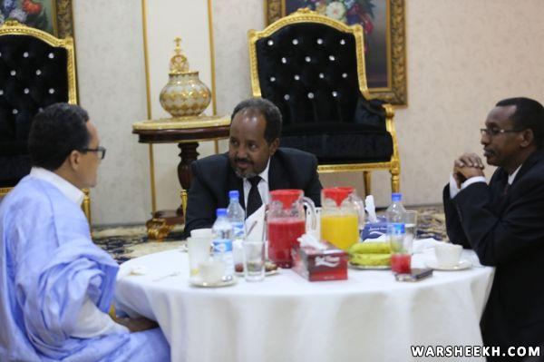 Madaxweynaha Jamhuuriyadda Federaalka Soomaaliya, Mudane Xasan Sheekh Maxamuud, ayaa Xarunta Madaxtooyada afur ugu sameeyay Wasiirka Arrimaha Dibedda ee Jamhuuriyadda Islaamiga ee Mauritania, Mudane Isselkou Ould Ahmed Izid Bih iyo danjireyaasha wadd