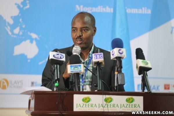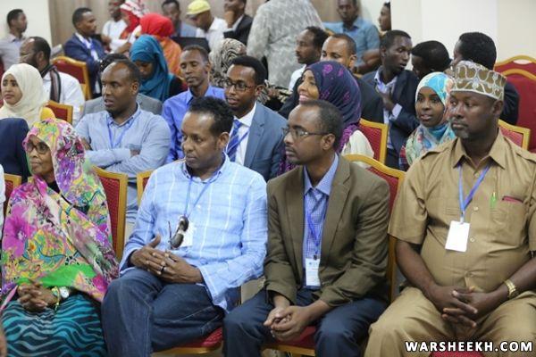 Waxaa Madaxweynaha ka hor , halkaasi ka akhriyey War Murtiyeedka shirka, Zakariya Yuusuf oo ka mid ah xubnihii qurbajoogta ee ka soo qeybgashey shirka lagu soo gabagabeeyay Muqdisho.