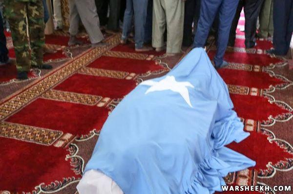Madaxweynaha oo hadal kooban jeediyay tukashada salaadda kadib ayaa sheegay in marxuumka uu ahaa geesi ka wada dhintey shacabka Soomaaliyeed, naftiisana u huray inuu cadowga ka dul kiciyo dadka iyo dalka.