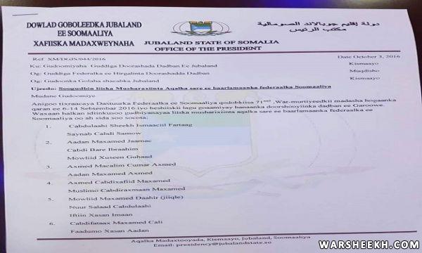 Maamulka Jubbaland Oo Ku Dhawaaqay Liiska Musharixiinta Aqalka Sare