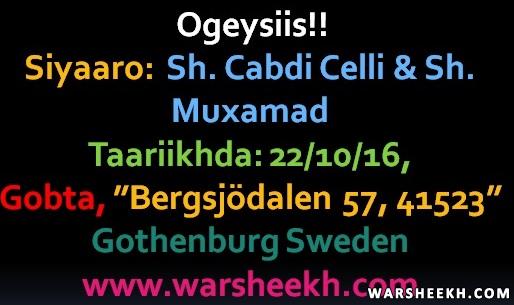 Ogeysiis: Siyaaradi Sheekh Cabdi Celli & Sh: Muxamad ee Gothenburg Sweden.