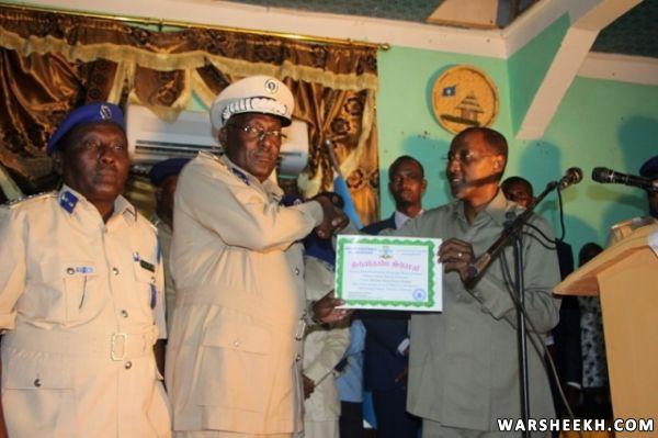 Madaxwaynaha GalMudug Cabdikariin Xuseen Guuleed ayaa u mahadceliyay Taliska Booliska Soomaaliyeed iyo Macalimiintii tababarkaasi bixiyay, isagoo shahaado sharaf gudoonsiiyay Taliyaha Booliska Soomaaliyeed.