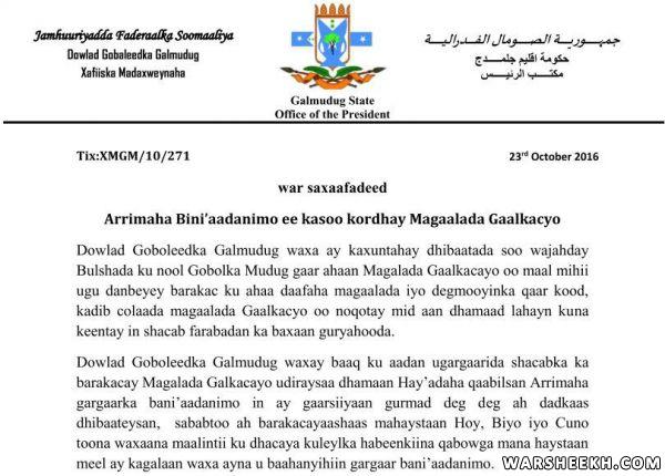Akhri:-Dowlad Goboleedka Galmudug Oo Baaq U Dirtay Beesha Caalamka