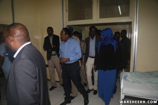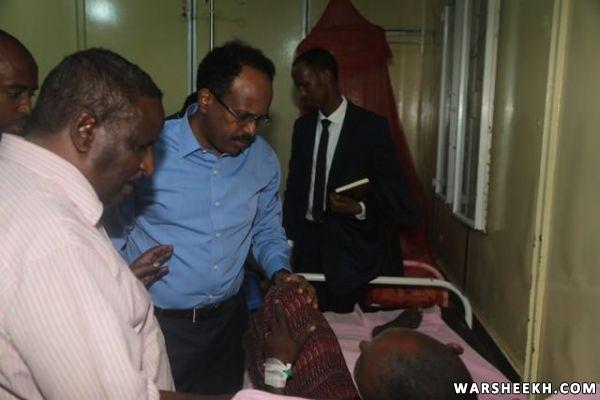 Farmaajo Oo Booqday Dhaawacyada Qaraxii Shalay + Sawirro