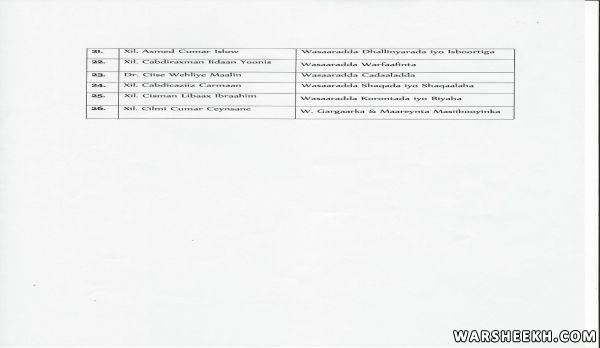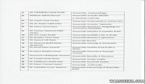 Akhri:-Liiska Magacyada Golaha Wasiirada Oo Dhameystiran