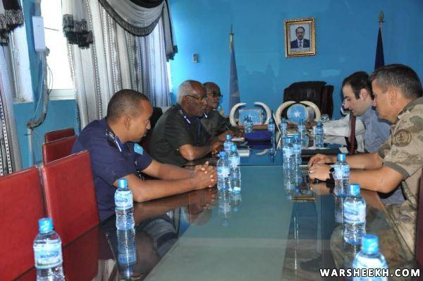Taliyaha Ciidanka Booliska Soomaaliyeed S/Gaas Bashiir Cabdi Maxamed "Ameeriko" ayaa kulan la qaatay ku-xiggeenka Safiirka dawladda Turkiga ee Soomaaliya Mudane Cali kan Aksooy iyo Saraakiil tababarayaal Ciidan ah oo ka socda Dugsiga tababa