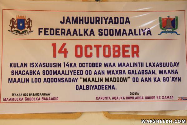 Munaasabadda ayaa waxaa hadallo ka jeediyey qeybaha bulshada ee ka qeybgalay munaasabadda, waxayna dhammaantood caddeeyeen falkii waxashnimo ee dhacay 14-kii Octoober inuu mideeyey quluubta Shacabka Soomaaliyeed.