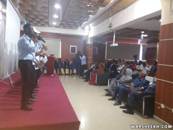 Guddoomiyaha Aqalka sare ee dalka Wasiiro, Xildhibaanno iyo marti sharaf kale ayaa ka qeyb galay munaasabad lagu daah furayay Istaraatijiyadda Wacyigelinta Qaranka, kaasi o ay soo qaban qaabisay Wasaaradda Warfaafinta Dhaqanka, Dalxiiska ee Xukuumadd