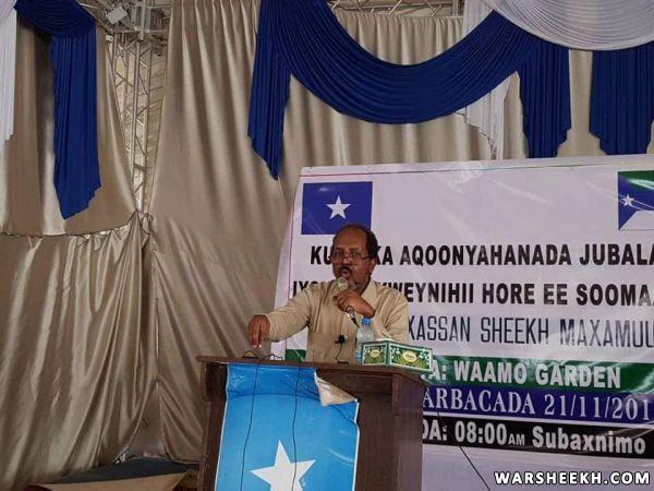 Madaxweynihii hore ee Soomaaliya Xasan Sheekh Maxamuud ayaa ardayda iyo aqoonyahankii uu kulanka la qaatay u jeediyay kalmad qiimo badneyd oo uu kaga hadlayay taariikhda siyaasadeed ee dalka iyo qorshaha loo baahan yahay in lagu badbaadiyo mustaqbalka jiilka soo koraya oo ay ayagu ka mid yihiin, sido kale Xasan Sheekh ayaa aqoonyahanka Jubbaland usoo bandhigay ujeedooyinka iyo aragtida fog ee loo aas-aasay Xisbiga uu hogaamiyo UPD.