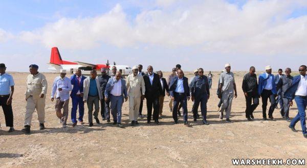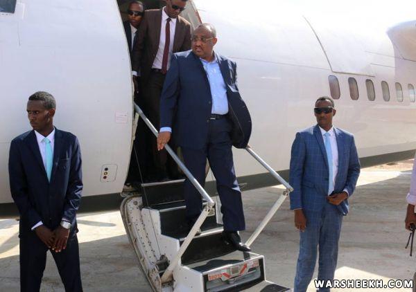 Madaxweynaha Puntland oo kasoo anbabaxay Magaalada Garoowe ee Caasimadda maamulka Puntland ayaa waxaa safarkiisa ku wehelinayey Guddoomiaye ku xigeenka 1aad ee Baarlamaanka Puntland, Cabdixamiid Sheekh Cabdisalaam ku-xigeenkiisa 2aad Xuseen Xaaji Diiriye, qaar kamid ah golayaasha Dowladda Puntland, iyo Saraakiil ka tirsan Madaxtooyada maamulkaasi.