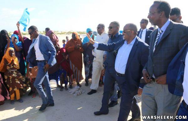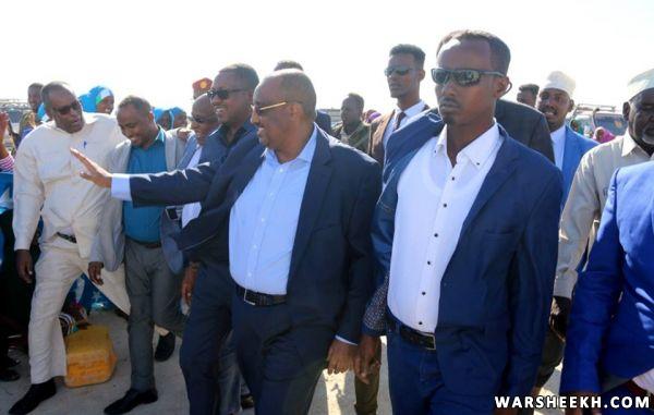 Madaxweynaha iyo weftigiisa ayaa markii ay kasoo degeen garoonka diyaaradaha Garacad waxaa halkaasi kusoo dhoweeyay maamulka Gobolka Mudug, Isimo, waxgarad, ganacsato iyo qaybaha kala duwan ee bulshada ku nool deegaanka Garacad.